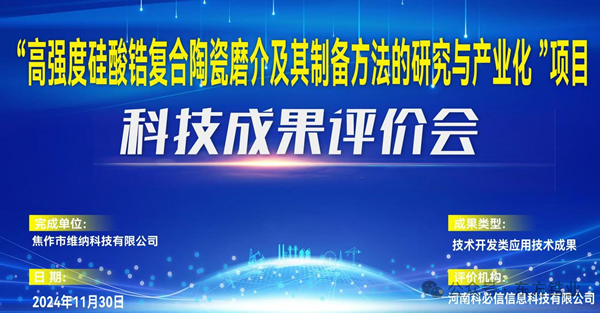 2024年11月30日,河南科必信科技有限公司成功组织了一场科技成果评价会议,对维纳公司完成的“高强度硅酸锆复合陶瓷磨介及其制备方法的研究与产业化”项目进行了全面评价。